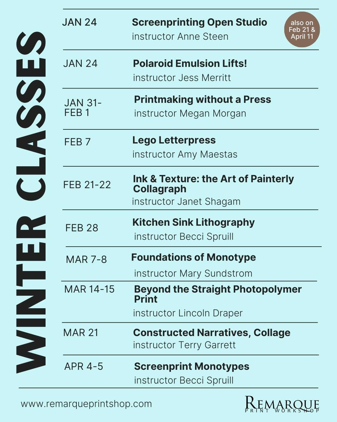 Workshops at Remarque
